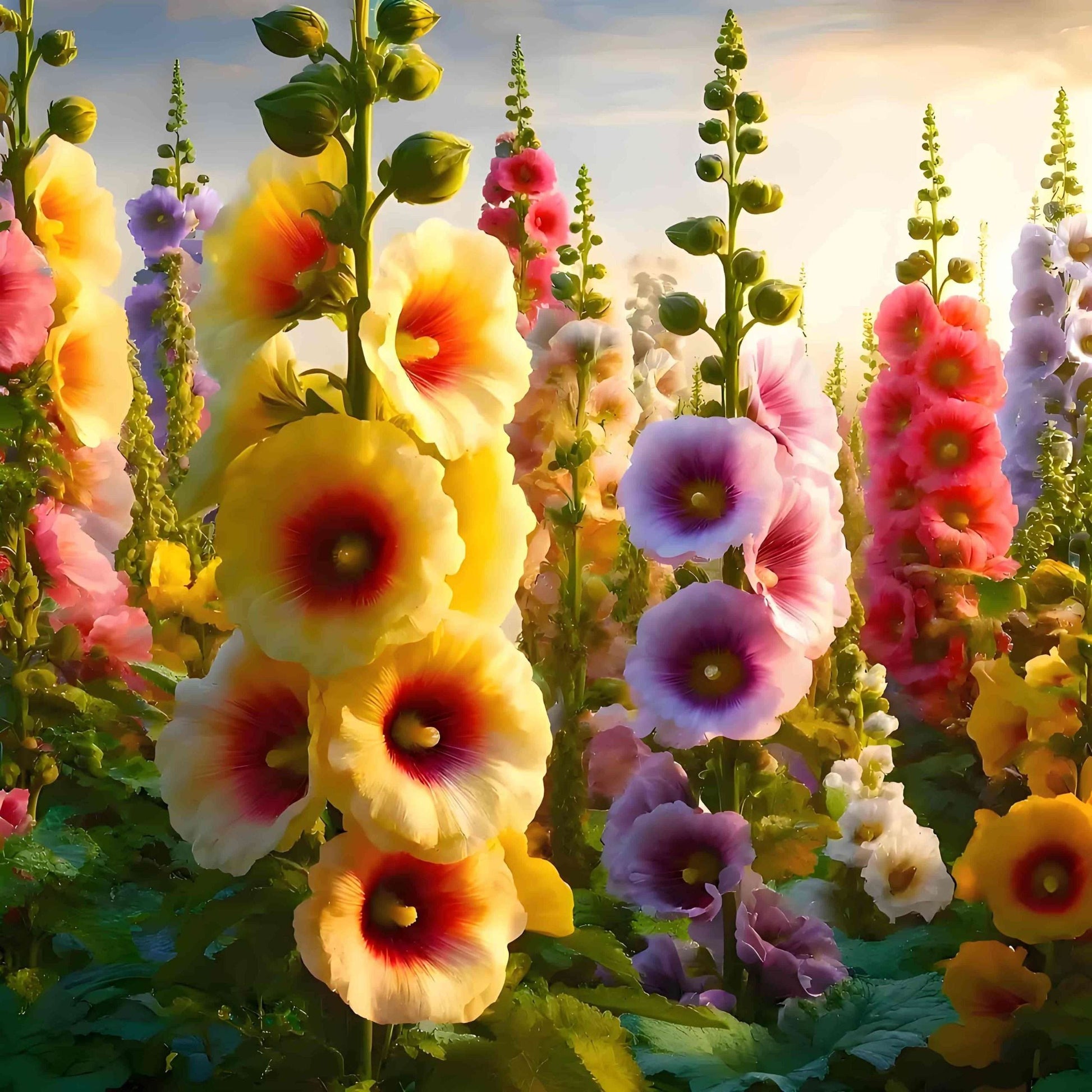 300pcs double mixed hollyhock seeds, rare Alcea rosea annua spring celebrity crimson, non-GMO heirloom, great gift.